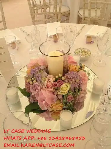 Floral centerpiece mirrors add the right touch to a floral setting.